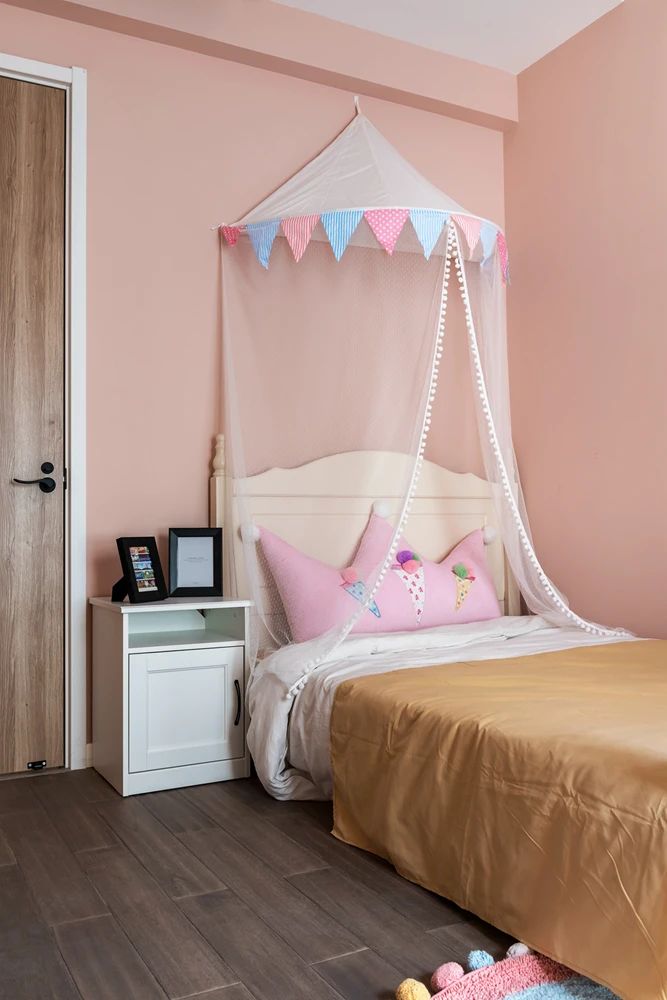 两个女儿房都采用了粉色系搭配打造在逃公主既视感的卧室